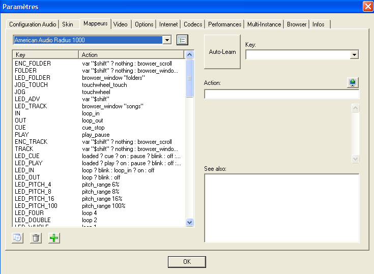 Déroule la liste des contrôleurs puis sélectionner le mapper American Audio Radius 1000.