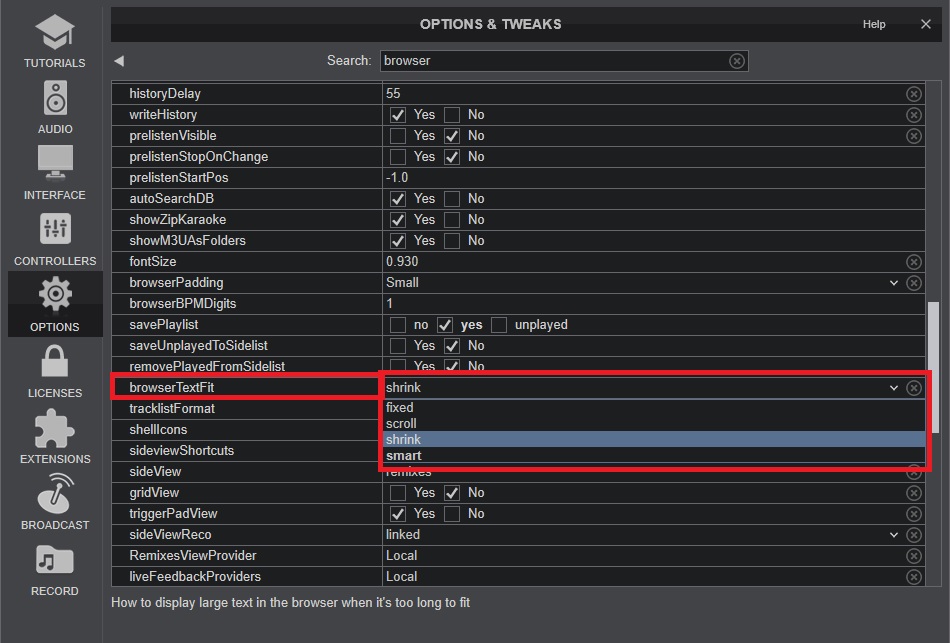 Is there some way to make the Browser text to center in all the columns (Artist, Title, Bpm etc..)