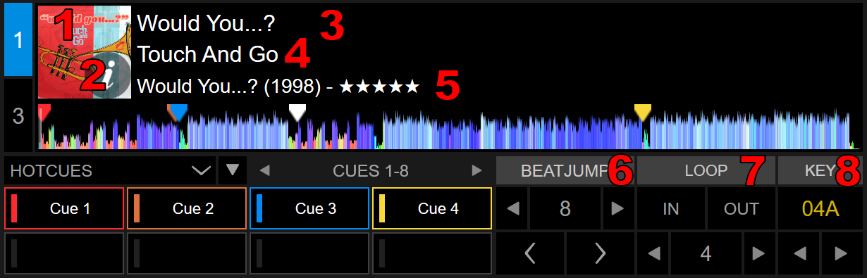 IF THE OPTION "Line 3 Searches Playlists" IS ENABLED, then double clicking on the test will search for all playlists containing the track. - Beatjump / ABT: Click on the label (e.g. "Beatjump") to toggle between Beatjum and Automatic BPM Transition (ABT) panels.