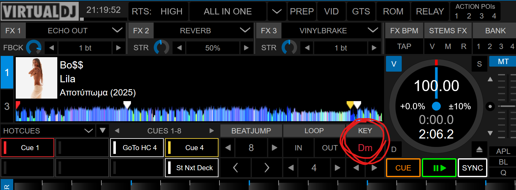 Also if you click the "KEY" label you can toggle the key display between Camelot and Musical display:
