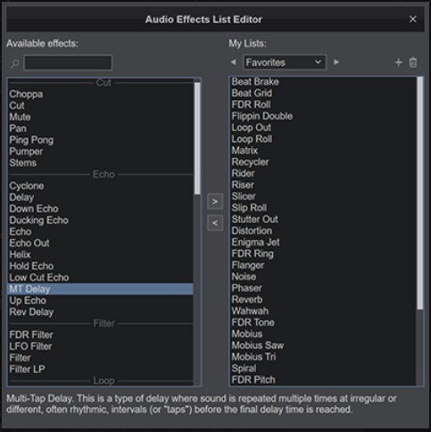Die VirtualDJ FX-Engine wurde komplett überarbeitet, modernisiert und bietet nun über 122 Effekte, darunter nahezu alle Effekte beliebter Hardware-Mixer wie Pioneer und Rane.