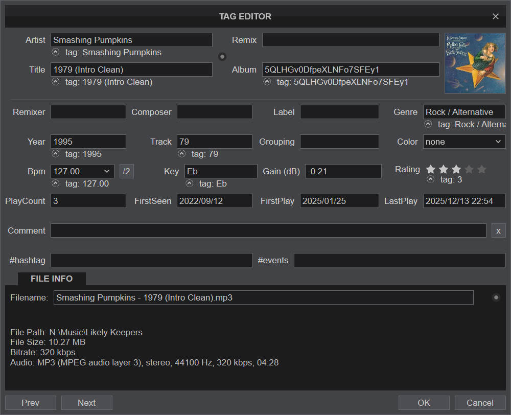 The fear the reaper song shows up in both "Rock" and the 1979 song only shows in the one with 722 files. I don't see anywhere to edit from what I can tell they are both just "Rock"