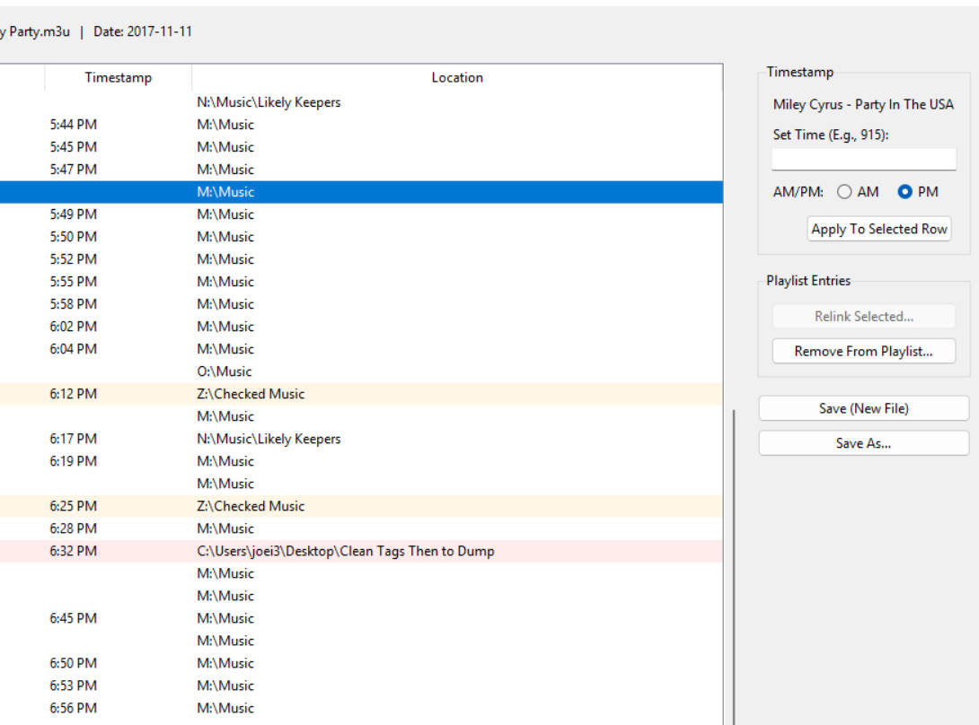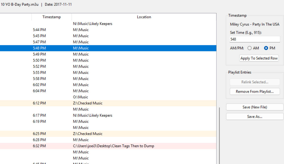 Only using Save As / Save New function so original history playlist stay intact. Has been working good for me so figured I'd see if there was any interest.
