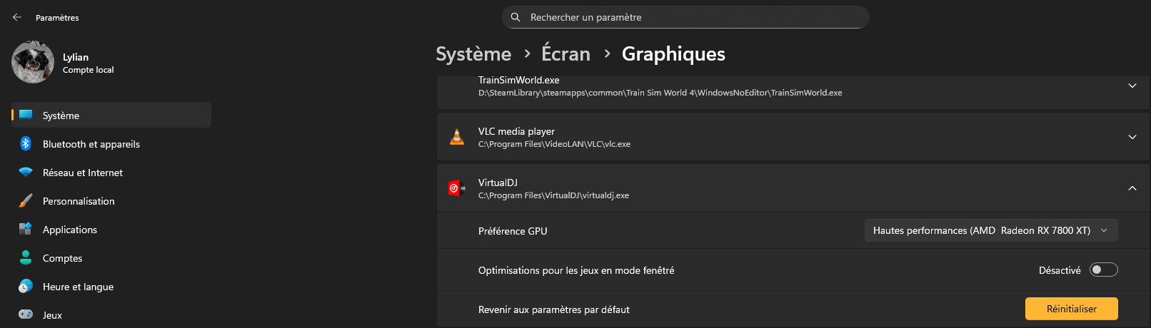 Et regarder Avant et après manipulation si il utilise toujours la même carte graphique, ou si il utilise bien la RTX dans paramètres de VirtualDJ -> Catégorie vidéo puis Vidéo Driver -> RTX.