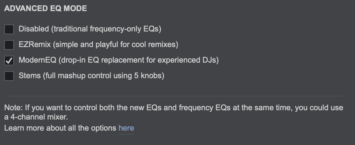im thinking about getting a controller with 4-channel mixer so i can use stems & eqs at the same time as well as switching to rekordbox, but i'm not sure if this setup is specific to vdj only? i just found out about this (image) and was pretty stoked, but i cant find anything aside from "how to set your eq knobs to be stems in rekordbox" tutorials. is this a thing you can do on other dj software?
