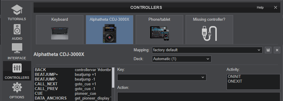 Note. Each CDJ-3000X unit (if more than 1 is connected) will be additionally displayed in this window, and any modifications in the mapping file will affect all units.