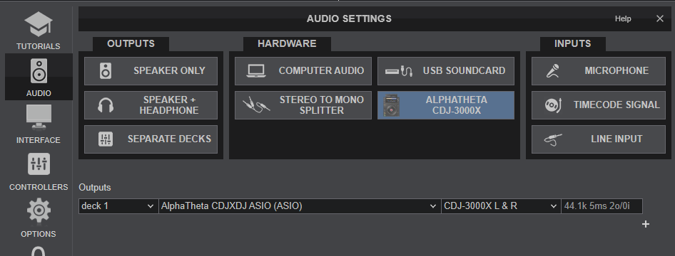 Click on the CDJ-3000X button in case the built-in sound cards of the CDJ-3000X are used and VirtualDJ will automatically apply the necessary Audio configuration. See Pioneer Club-setup Guide for further setup options.