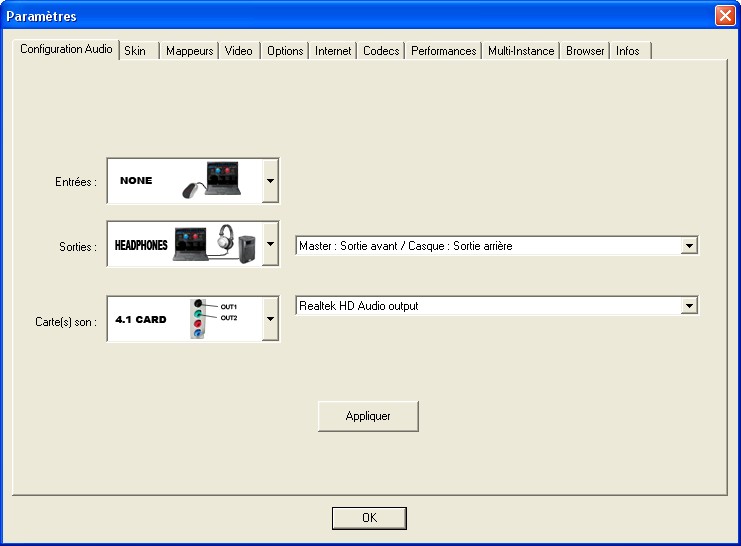 Carte son: 4.1 card --> sélectionne la carte son du pc