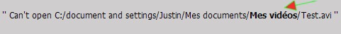 '' Can't open C:/document and settings/Justin/Mes documents/Mes vidéos/Test.avi ''