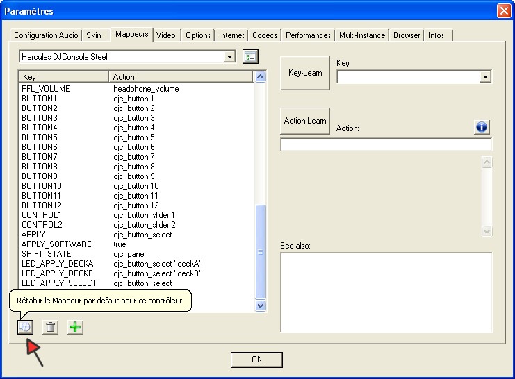 Il fallait juste rétablir le mappeur de la Hercules DJconsole steel, en cliquant sur la petite icône en CD en bas a gauche de la fenêtre