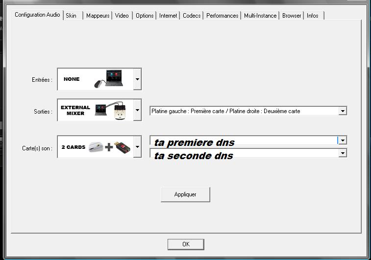 nn je veux l'utiliser juste comme mixer,c'est pour cela que je cherche a y connecter les 2 dns