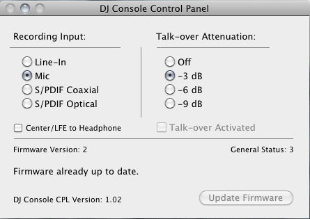 Petit problème, après avoir installer le control panel correctement et "avec succès", celui-ci me renvoie "no DJ console were found" alors qu'elle est connectée à mon mac alors qu'elle fonctionne très bien (le bouton central fait office de souris). J'ai essayé de régler les configurations MIDI dans l'utilitaire, j'ai ensuite installer un maximun de control panel mais rien n'y fait, la console ne répond.