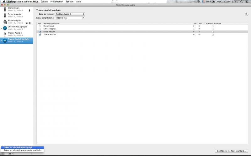 il ne faut pas oublier qu'il faut créer un périphérique agrégé sur Mac