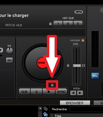 Pour information le cadenas est la fonction : smart_play : qui met automatiquement le morceau du deck ou on presse PLAY au même BPM que le morceau qui est en lecture ,-) si le cadenas est en mode "activé" !