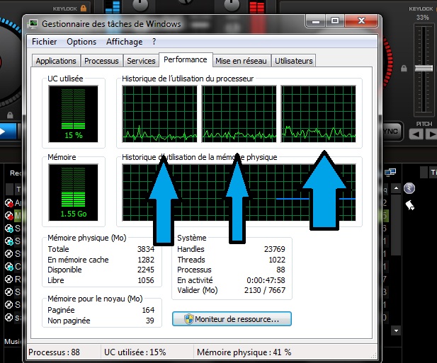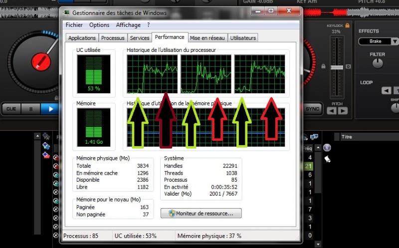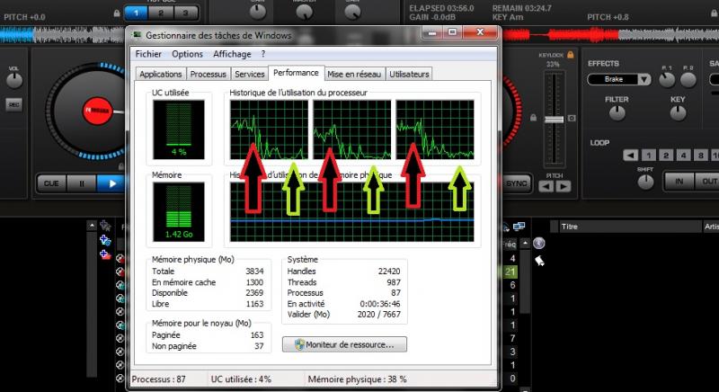 Juste à titre d'information voila ce que le Wi-Fi (ou câble RJ45) soit allumé ou soit éteint utilise comme ressource CPU tout en utilisant le logiciel Virtual DJ PRO FULL !