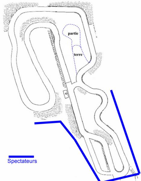 je n'ai pas de plan a l'echelle - il n'y a pas de tribunes - c'est une piste de karting les spectateurs sont debout dans les champs - le nombre de personnes attendu environ (sur la journée) 10 000 (en 2009 il était 6 000)