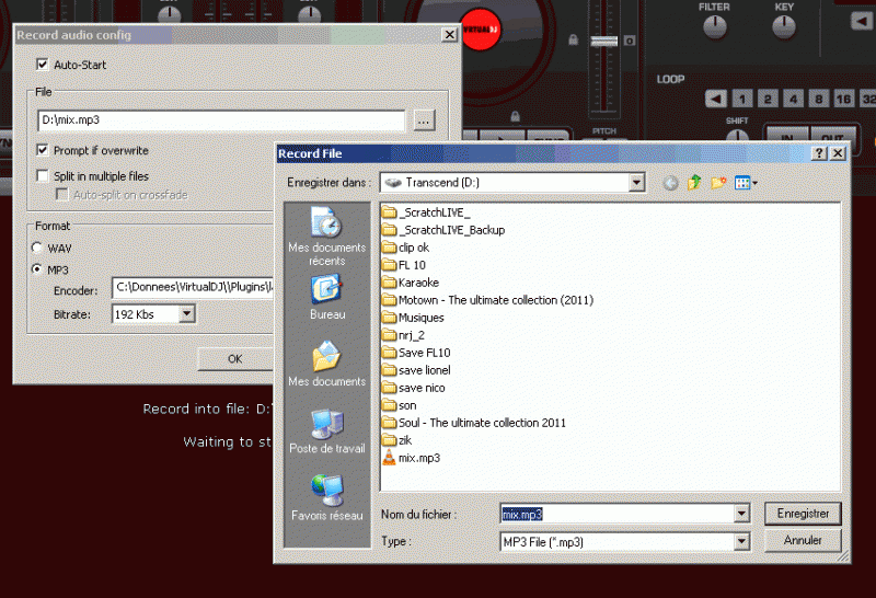 tuto de Limole ==> http://www.virtualdj.com/homepage/limol/blogs/3563/_TUTO__Enregistrement__audio_et_video_(comment_configurer).html