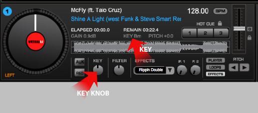 Note: If you have already done setting up the BPM thru the Pitch slider and if keys display is not the same as on the other deck that is playing you can use the knobs to match the key of both decks.