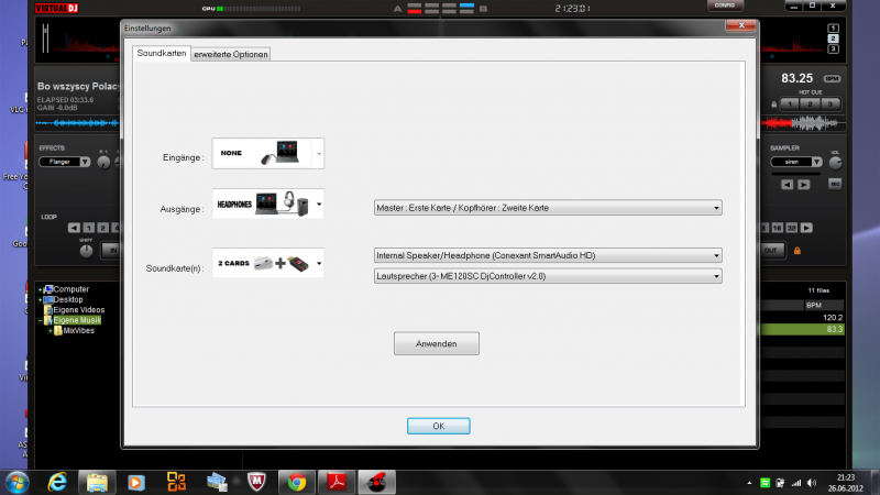 mit dieser config laufen die tracks aber der ton kommt ausm lappi komischerweise funktioniert aber das mic über die anlage ???????