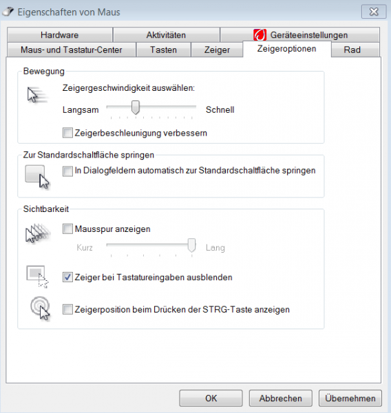 Wie sind deine Einstellungen für die Maus..? Zeigergeschwindigkeit/ Zeiger Schema/ Mausspur etc. ?