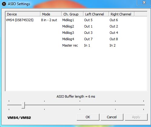 wie sind deine Decks in der Reihenfolge auf der VMS vlrn 3-1-2-4..? Wenn ja dann stelle die Asio´s mal so ein...