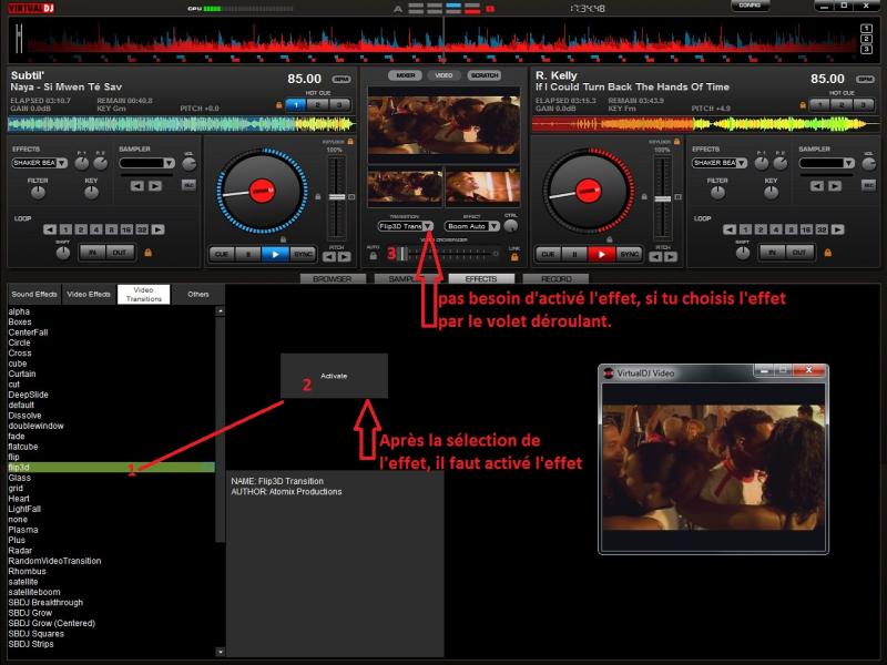 je sélectionne l'effet transition (ex Flip3d) via le menu déroulent du logiciel !