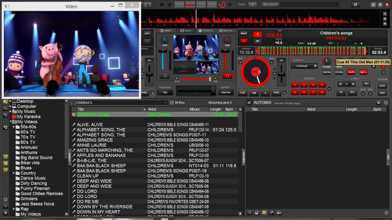 I do donated karaoke for kids at a local club once a month. The small children can't read lyrics, but they do know the words, and love to sing. So I found this vid. It has 44 songs on it. I used 43 cue points to separate the songs. It works perfect. Virtual DJ staff I would like to Thank You for bringing this program to me and allowing me to be able to do the many fun things I do with it. Please know that amid all the constant halabaloo that goes along with being a DJ, you guys do also touch hearts. Thank You, Mrgrumpy.