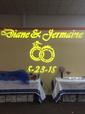 Actually using a decent projector is a lot more versatile than your average gobo unit, for a start you won't get a "square" if using a black background, the monograms/effects are quick, easy and simple to apply and your not stuck to a few colours either. Here's a couple of ideas...