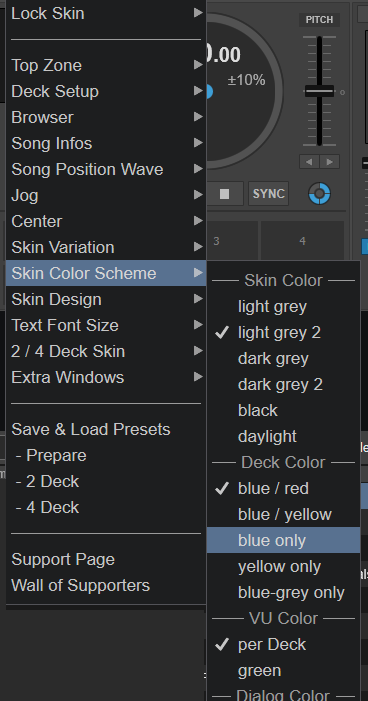 You can set all Decks blue, yellow and blue-gray at the skin button.