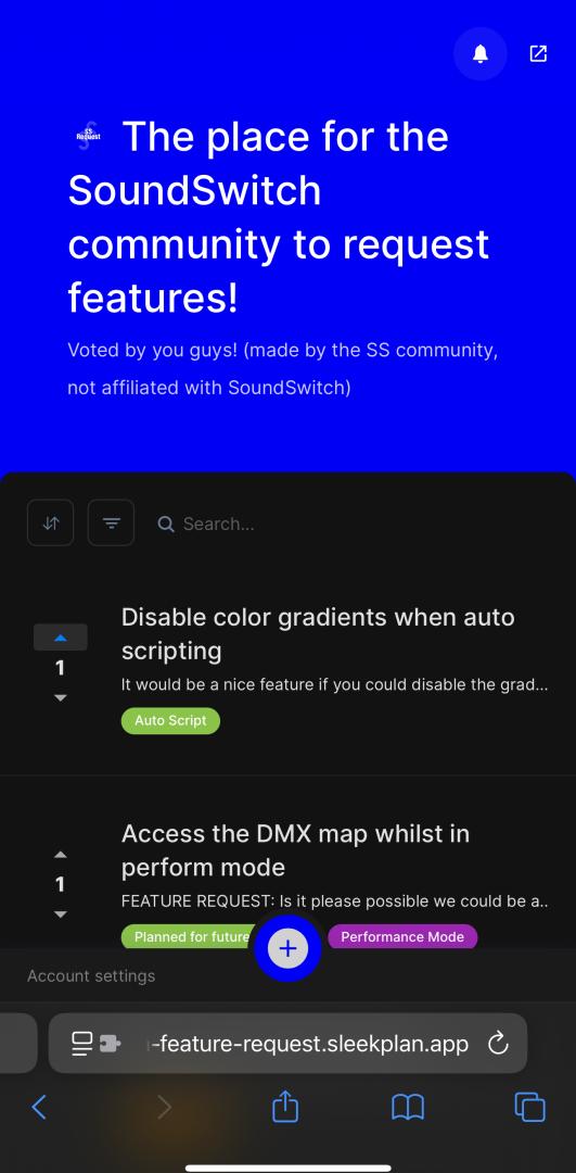 I’ve created a simple site to put your SoundSwitch feature request in! Hopefully more people will see the request and like it so soundswitch will know which things have a priority. Also it’s a nice overview about what already has been requested! No account needed to post a request or like an existing request! It’s not much but i couldn’t find a clear site or something similar :)