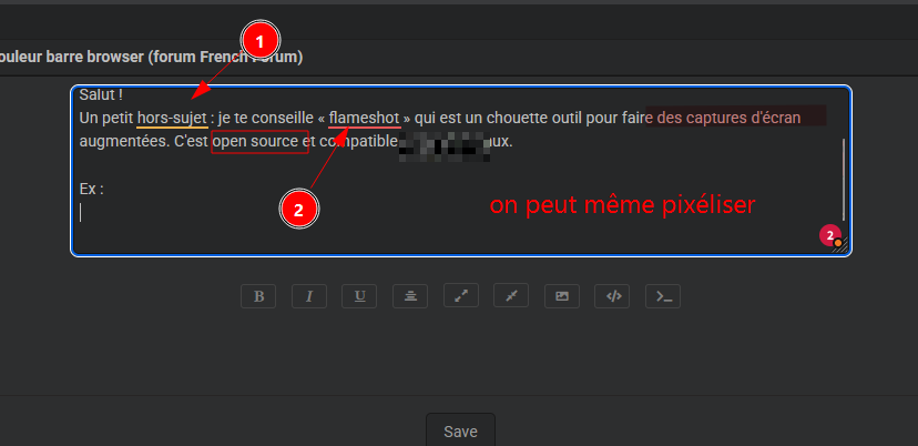 Un petit hors-sujet : je te conseille « flameshot » qui est un chouette outil pour faire des captures d'écran augmentées. C'est open source et compatible Win/Mac/Linux.