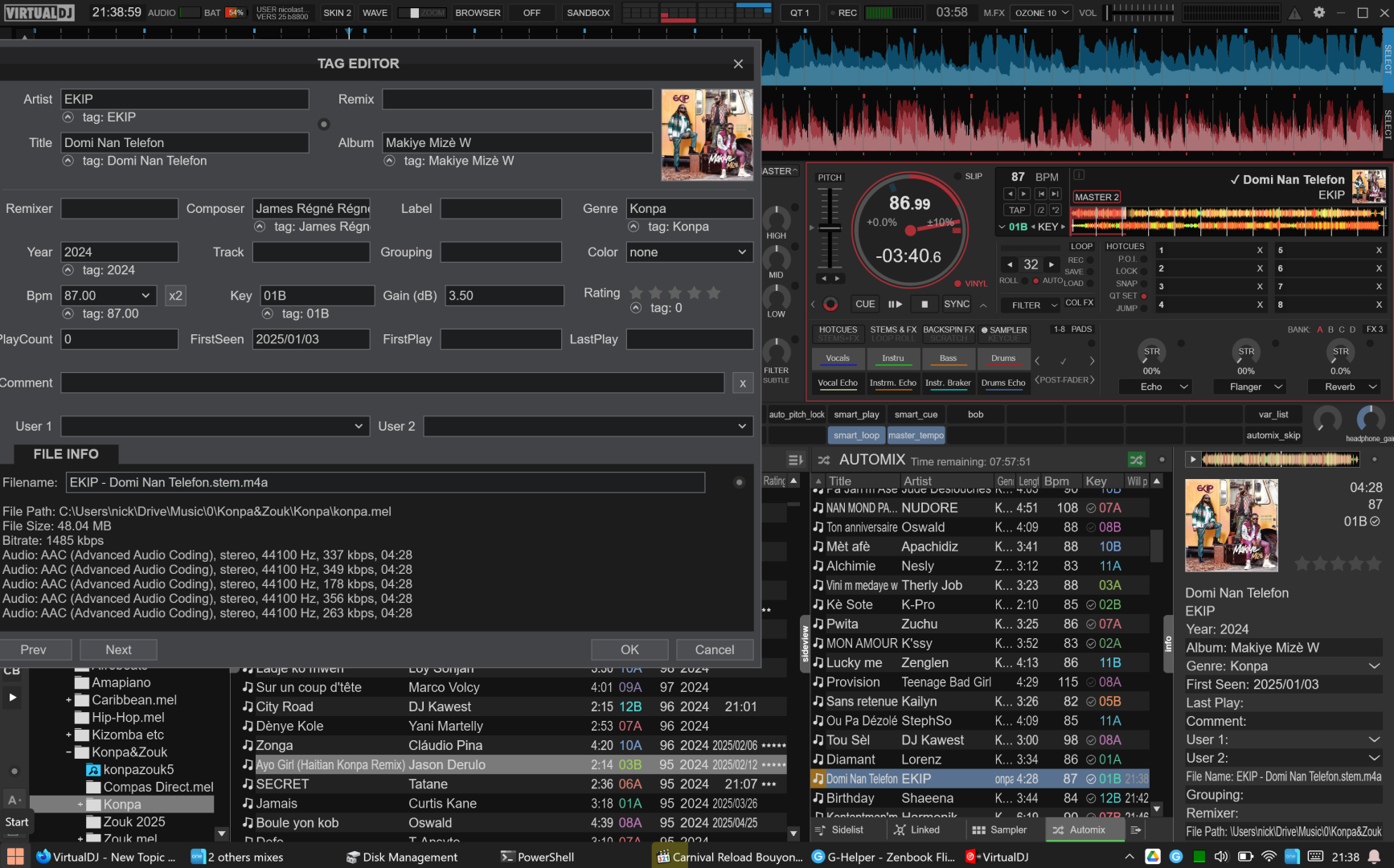 The point is it's convenient to be able to use Traktor's 4 stem format (1 track for full track, 4 stem tracks), without having to redo them. Also, Nuostems' algorithm (mel_band_rofomer+htdemucs_ft) is still better than VDJ's (at least last time I checked), but doesn't do separate kick/snare.