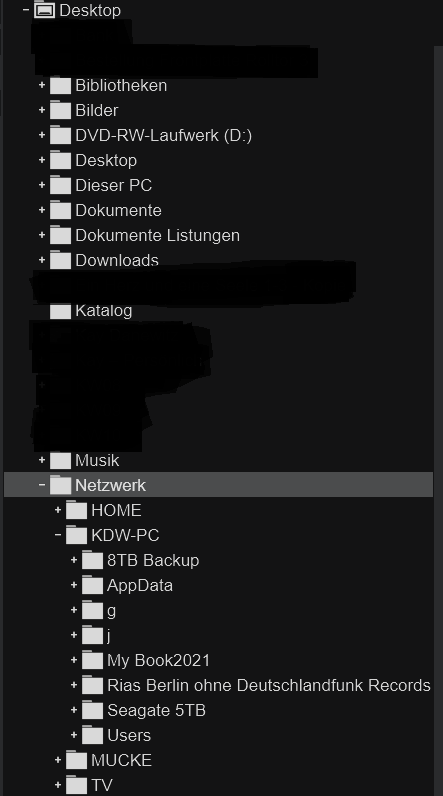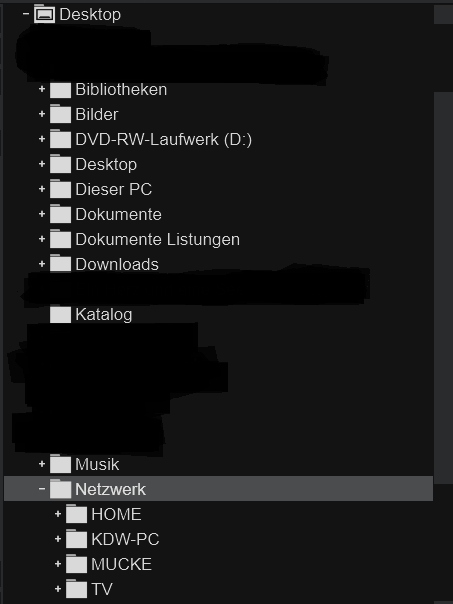 Ja, im Dateiexplorer ist alles ganz normal sichtbar und bedienbar. Ich habe nur interne Festplatten. Ich habe gerade mal geschaut, in der Version v8.5-64 b7131 funktioniert es wunderbar. (siehe Bild unten) Es wird auch alles, was auf dem Desktop vorhanden ist, angezeigt. Bei neueren Versionen und auch bei VDJ 2026 wird unter Desktop überhaupt nichts angezeigt.