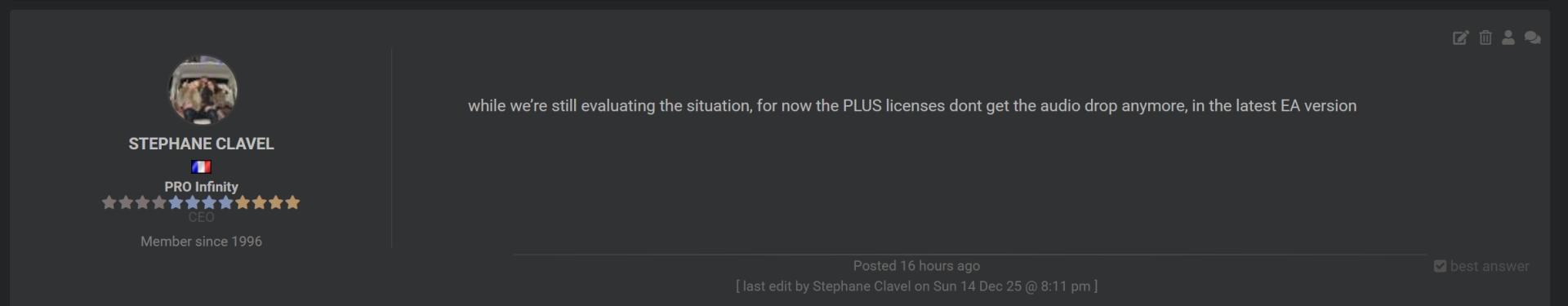 wie schon geschrieben ... in der aktuellen Eary Access sollte das nicht mehr zu hören sein ... bitte mal testen und ggf. Rückmeldung geben ...