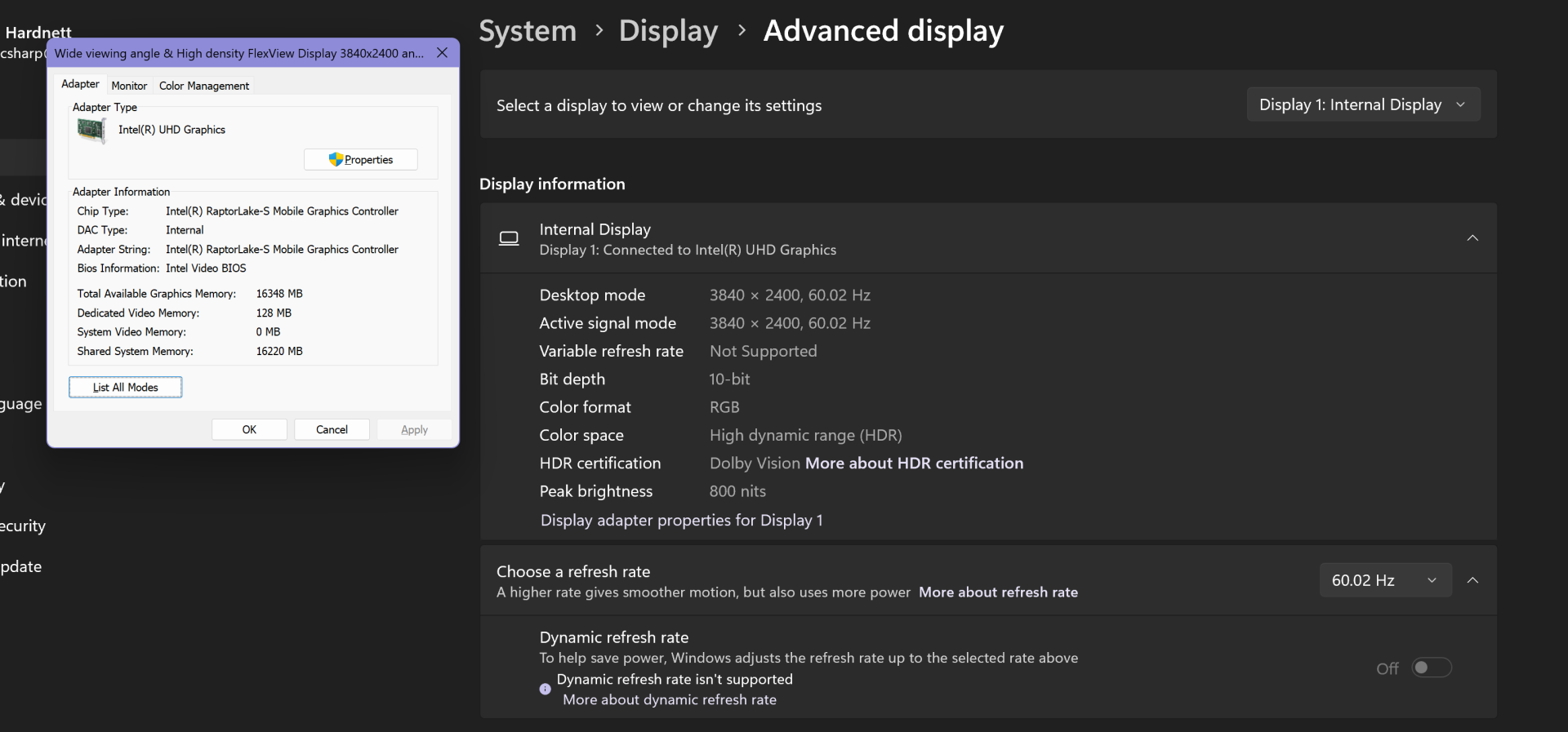 GPU 0 Intel UHD Graphics (sharing 16 GB of the RAM)