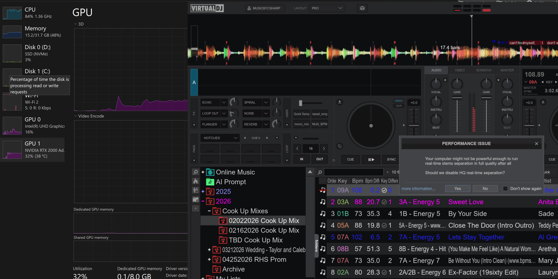 So from what I can tell, the machine is not being stressed, and should have the capacity to handle real-time stems without any warnings. What is causing VDJ to issue this warning?