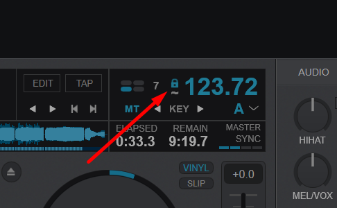 the bpm stabilizer is accessed with the small lock icon that will appear near the bpm display if a track is set to variable BPM.