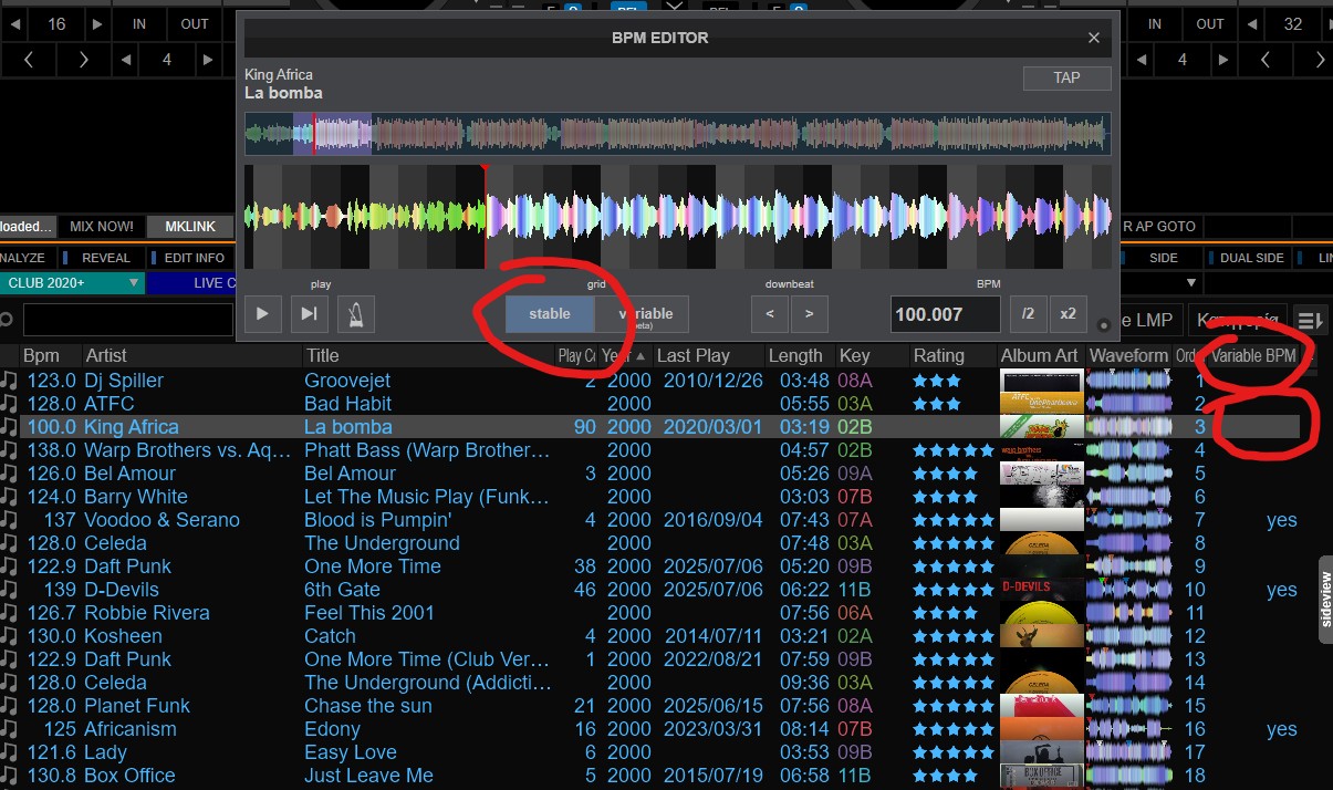 Is there a way to identify tracks with multiple BPMs? When loaded on a deck and/or when displayed in browser?