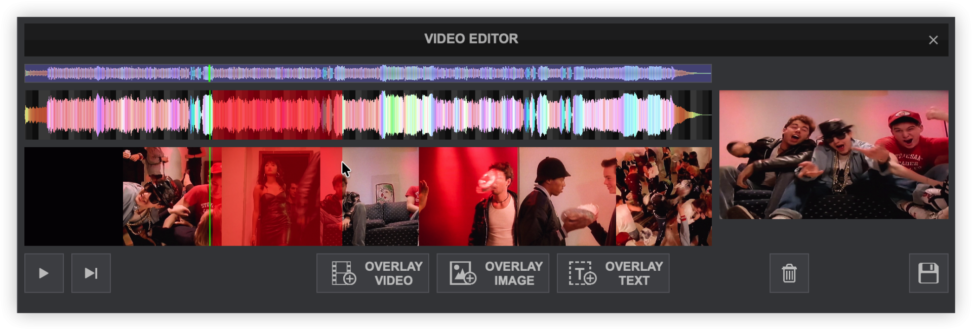 Used to create and insert the Video Overlay(s) into the Video Timeline based on the Playheads position.