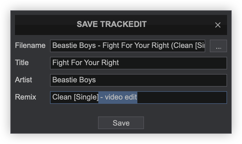 10. SAVE. Creates a .vdjedit file in the same folder as the original track and a special icon will be applied to this file (see File Icons)