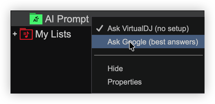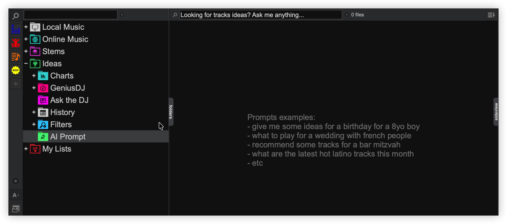 The AI Prompt folder provides the ability to get ideas for any occasion directly inside the browser. Results can be dragged and dropped directly to a deck to play instantly.